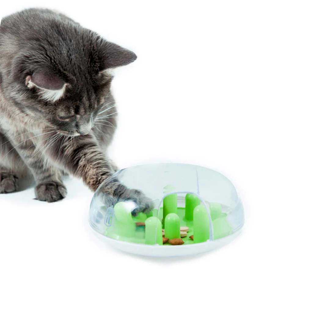 The clear plastic over has three separate openings for you cat to slip its paws through as it searches for treats. There are also two interchangeable plates that will change the degree of difficulty of this product.
