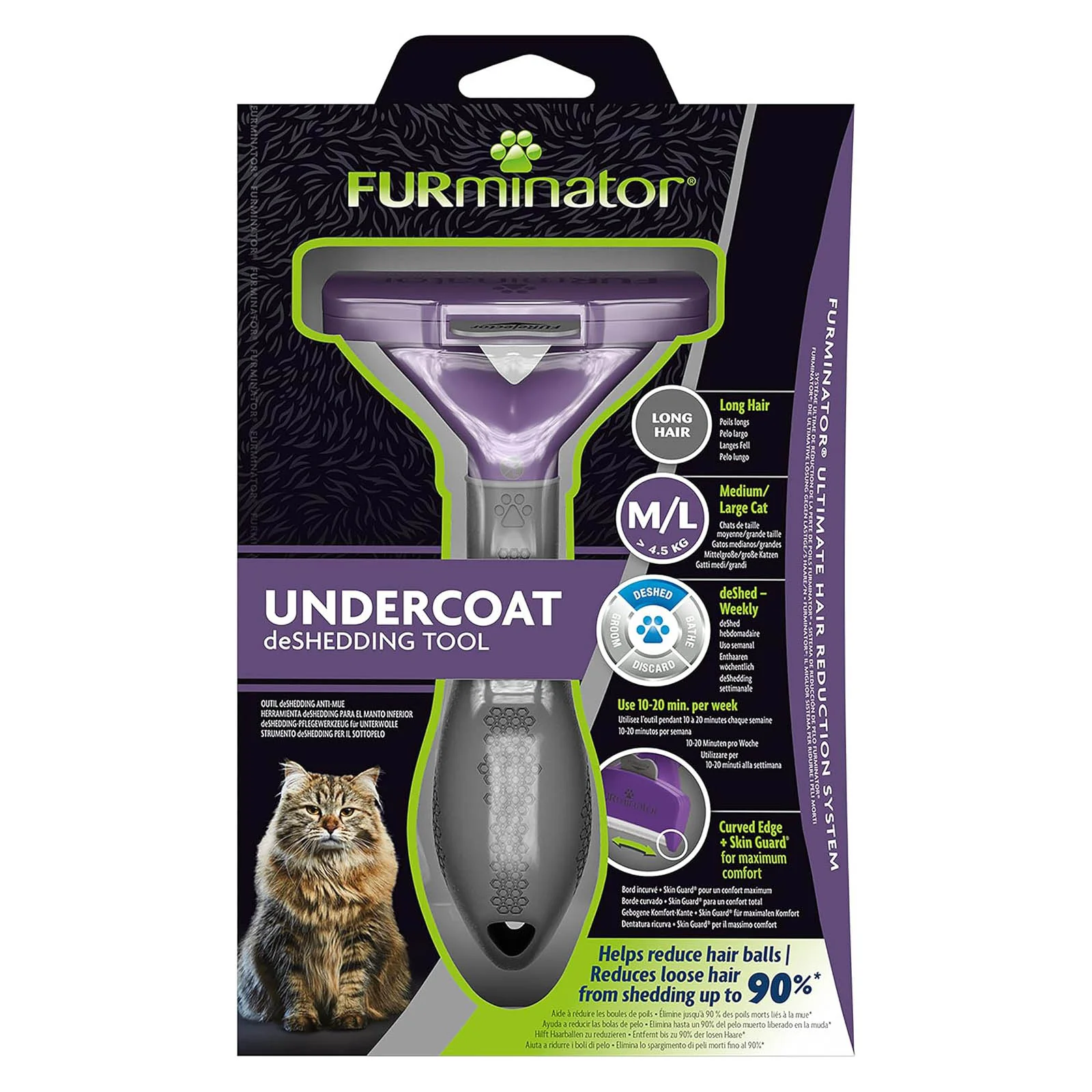 Contents: 1 x FURminator Undercoat de-Shedding Tool for Medium/Large Long Hair Cat